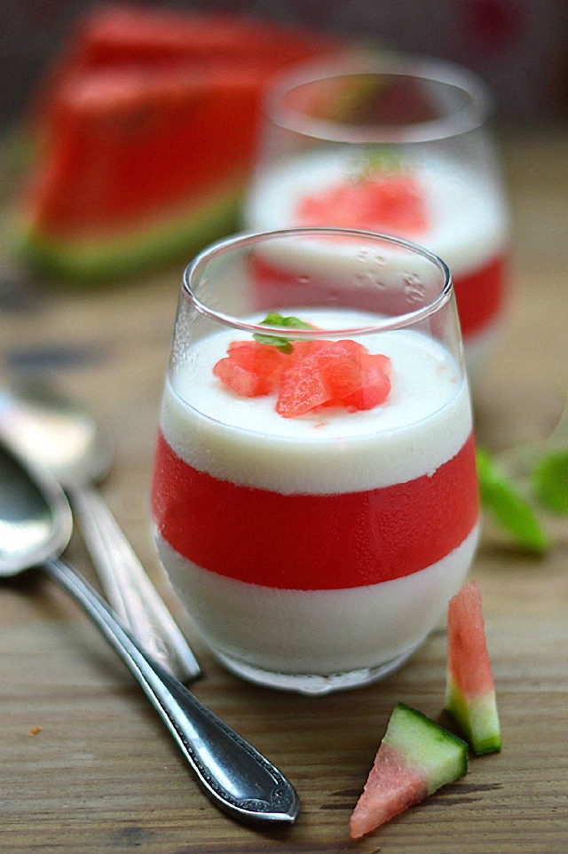 Tầng đỏ dưa hấu + tầng trắng sữa dừa tạo hiệu ứng cực đẹp.