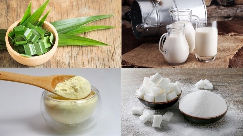 Nguyên liệu làm thạch rau câu dừa lá dứa